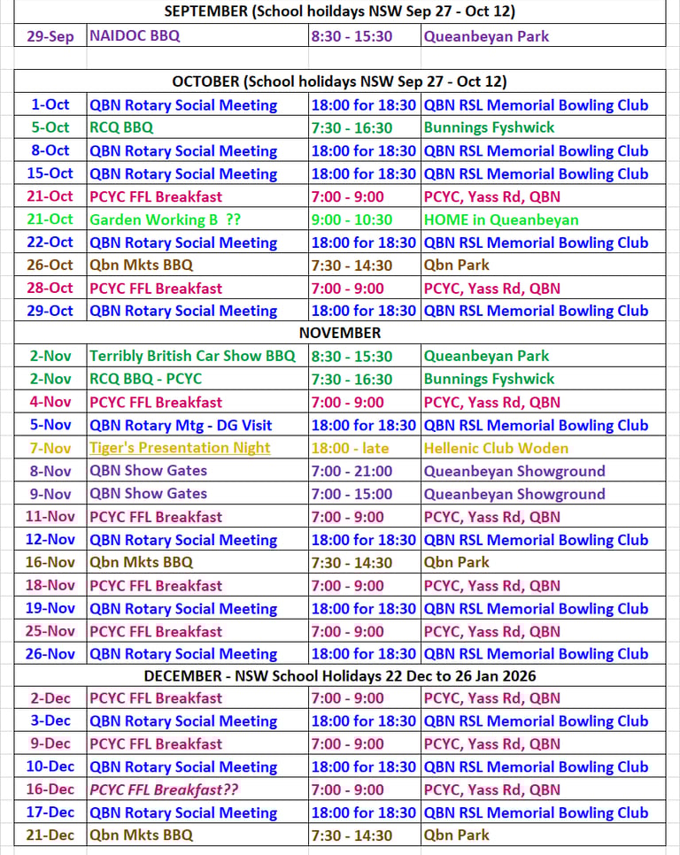 Rotary Club of Queanbeyan works very closely with the PCYC FFL Program coordinators, members of the NSW Police Youth Command in Queanbeyan